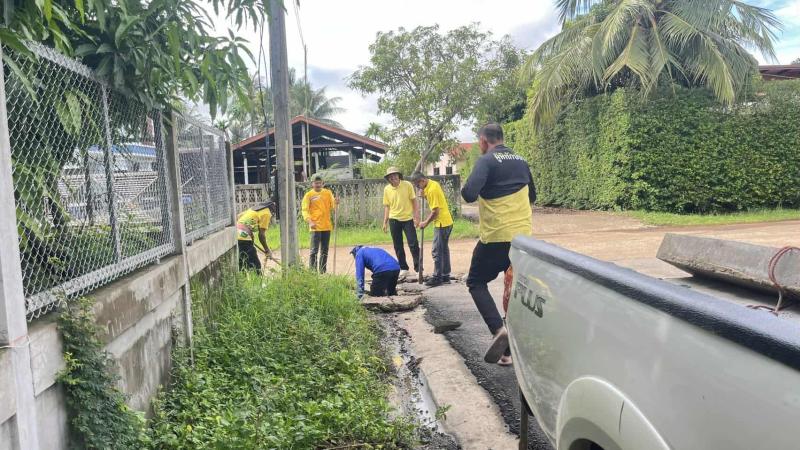 นางพรเพ็ญ ทองดล นายกเทศมนตรีเทศบาลตำบลถาวร มอบหมายให้กองช่าง ร่วมกับงานป้องกันฯ
