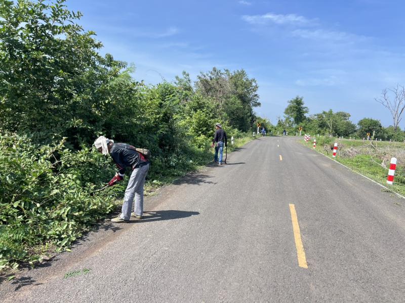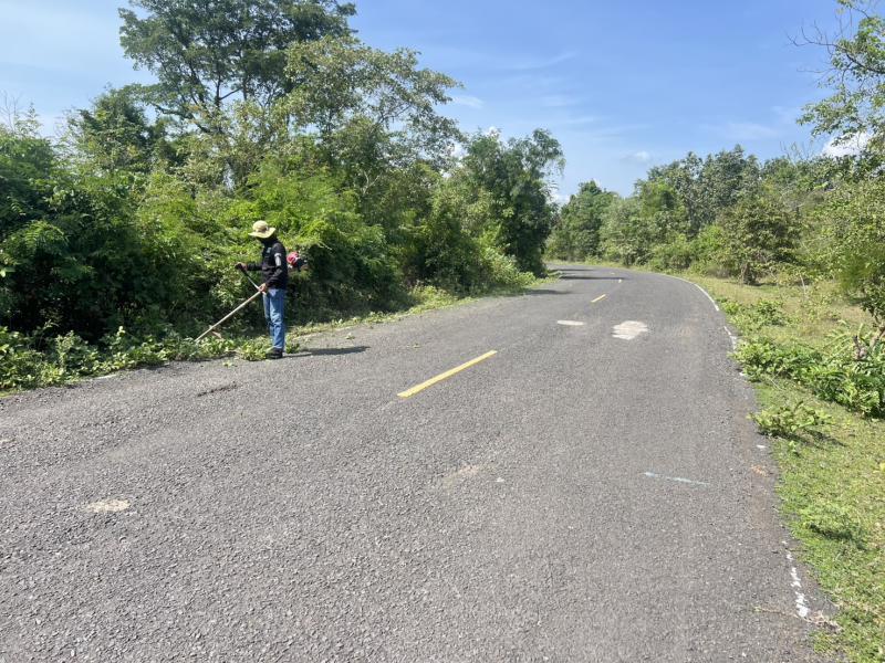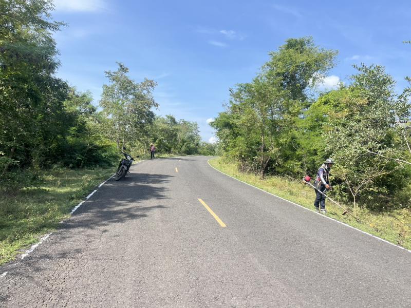 ออกตัดแต่งต้นไม้ริมถนน เพื่อปรับทัศนวิสัยในการขับขี่ให้ดียิ่งขึ้น ถนนเส้นบ้านถาวร-โคกสำราญ