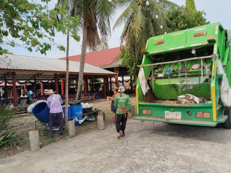 นำรถบรรทุกขยะจัดเก็บขยะภายในวัดนิคมเขต ตำบลถาวร