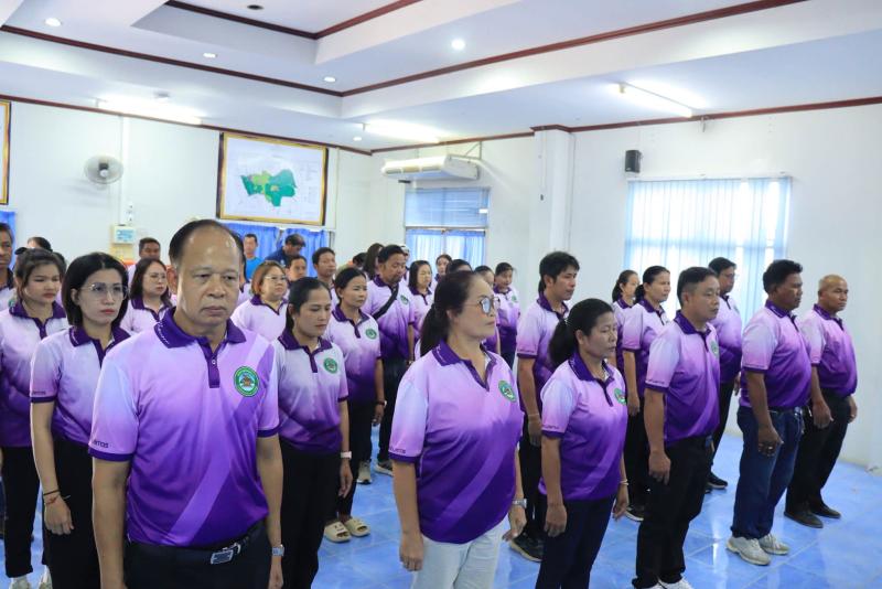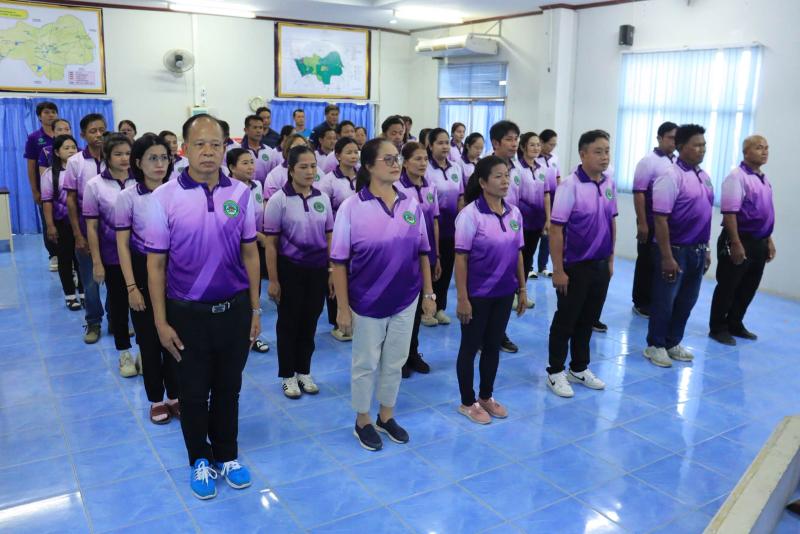 นางพรเพ็ญ ทองดล นายกเทศมนตรีตำบลถาวร อ่านสารจากนายอนุทิน ชาญวีรกูล นายกรัฐมนตรีและรัฐมนตรีว่าการกระทรวงมหาดไทย มอบสารเนื่องในวันเทศบาล 24 เมษายน 2569