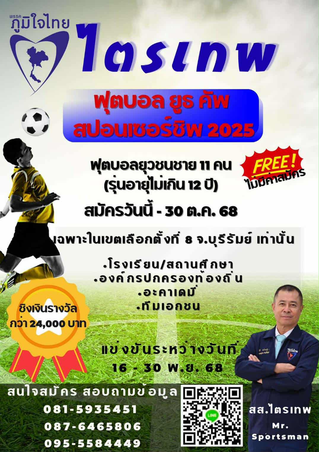 สมัครวันนี้ ถึง 30 ตุลาคม 2568 เฉพาะในเขตเลือกตั้งที่ 8 บุรีรัมย์ เท่านั้น