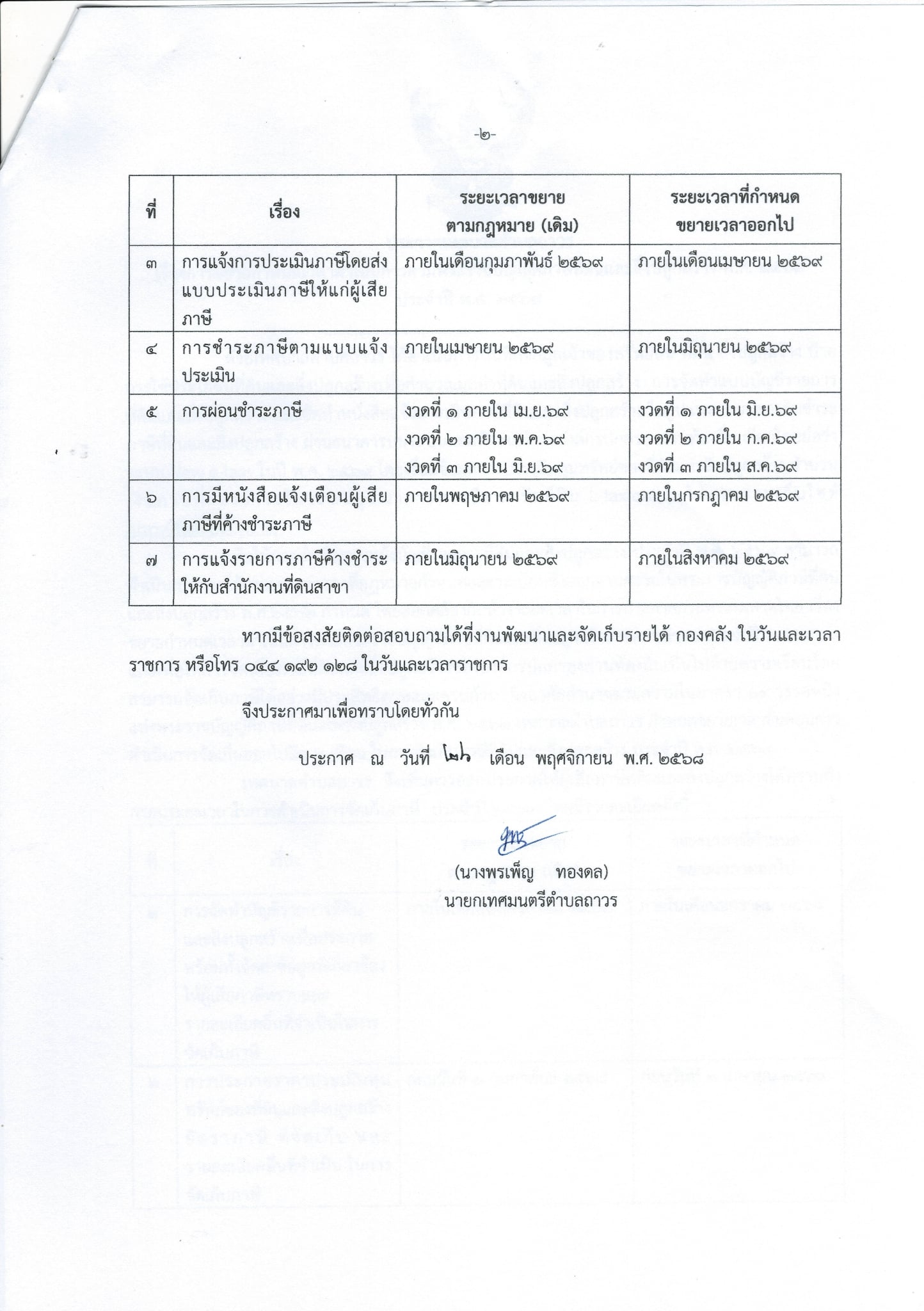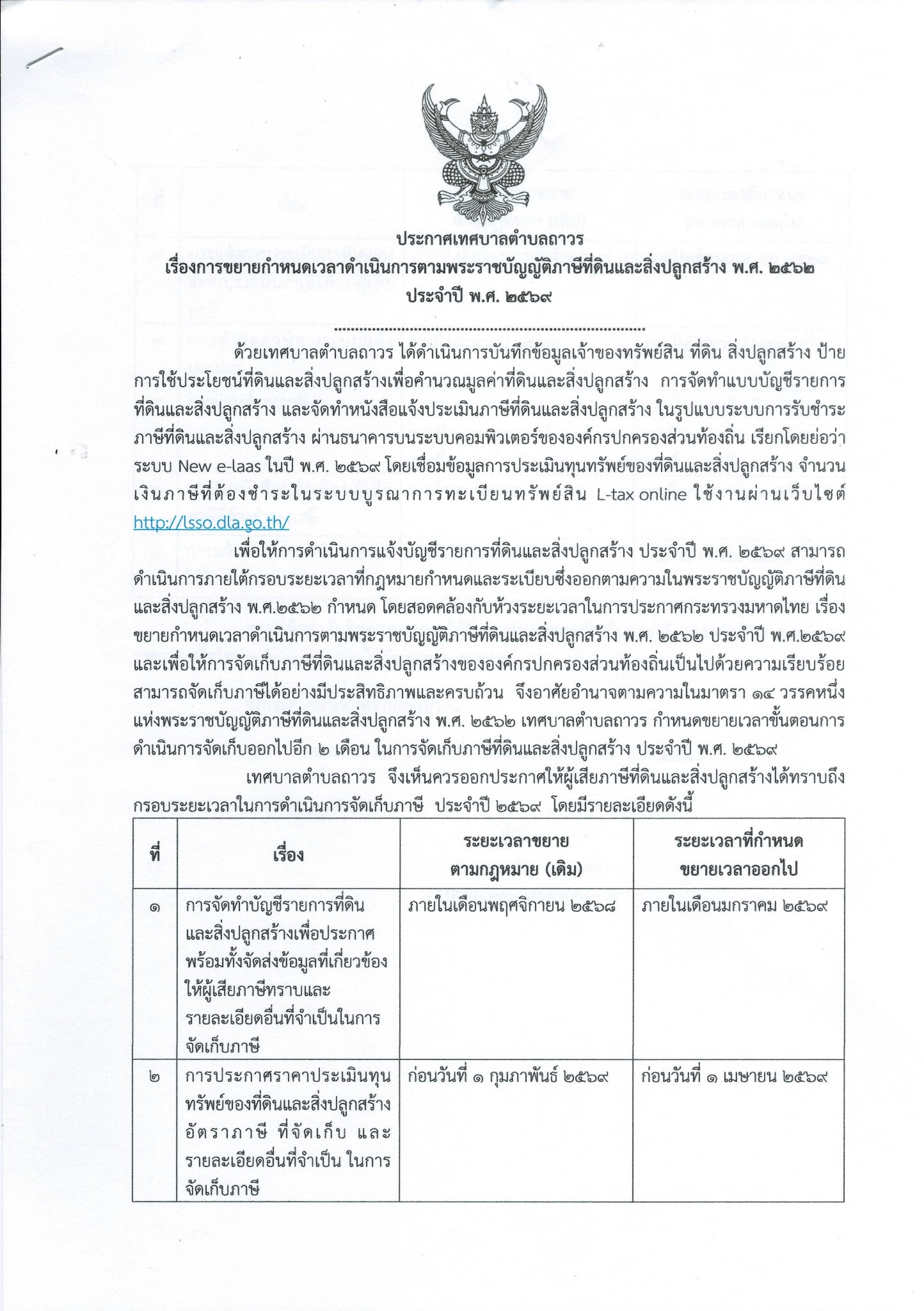 ประกาศเทศบาลตำบลถาวร เรื่อง ขยายกำหนดระยะเวลาดำเนินการตามพระราชบัญญัติภาษีที่ดินและสิ่งปลูกสร้าง พ.ศ. 2562 ประจำปี พ.ศ.2569