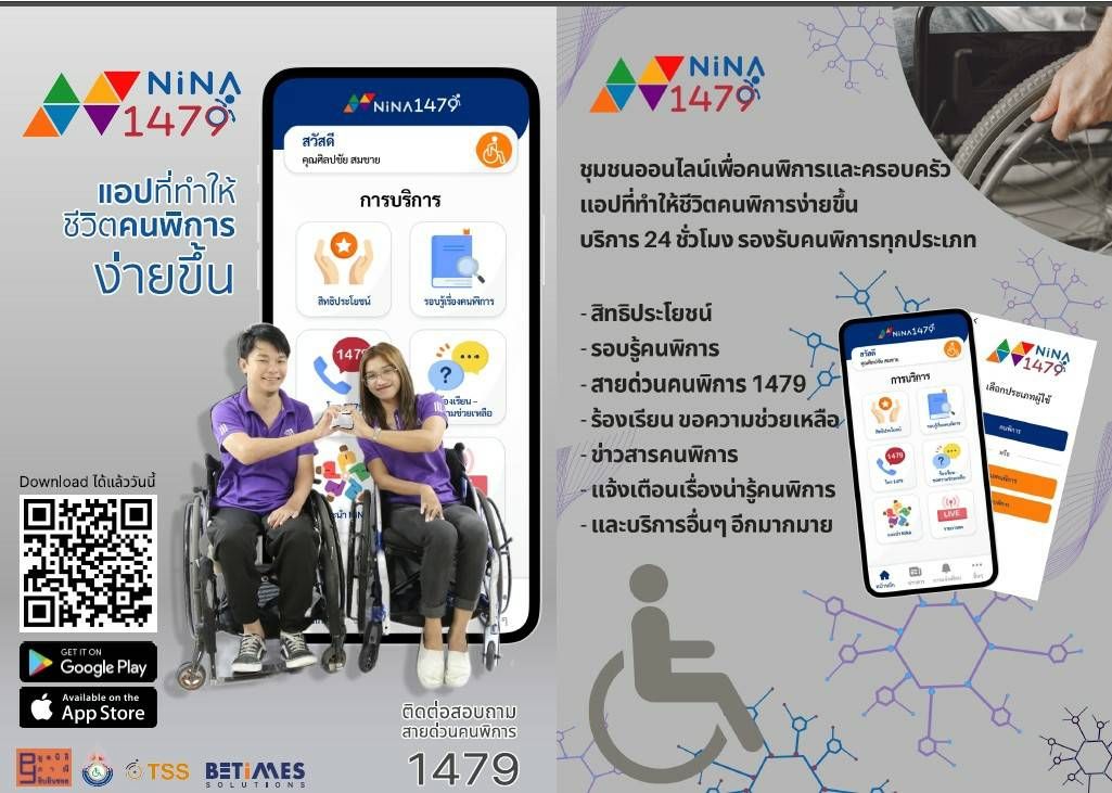 แอปพลิเคชัน “NiNA1479” มีบริการสำคัญ อาทิ การตรวจสอบสิทธิคนพิการ การรับเรื่องร้องเรียน การให้ข้อมูลข่าวสาร การส่งเสริมอาชีพ และสามารถติดต่อขอความช่วยเหลือผ่านสายด่วนคนพิการ 1479