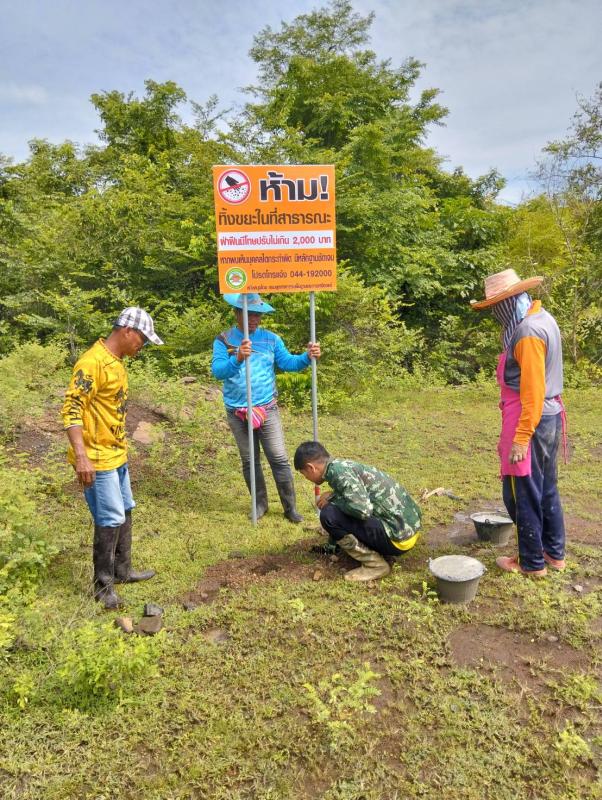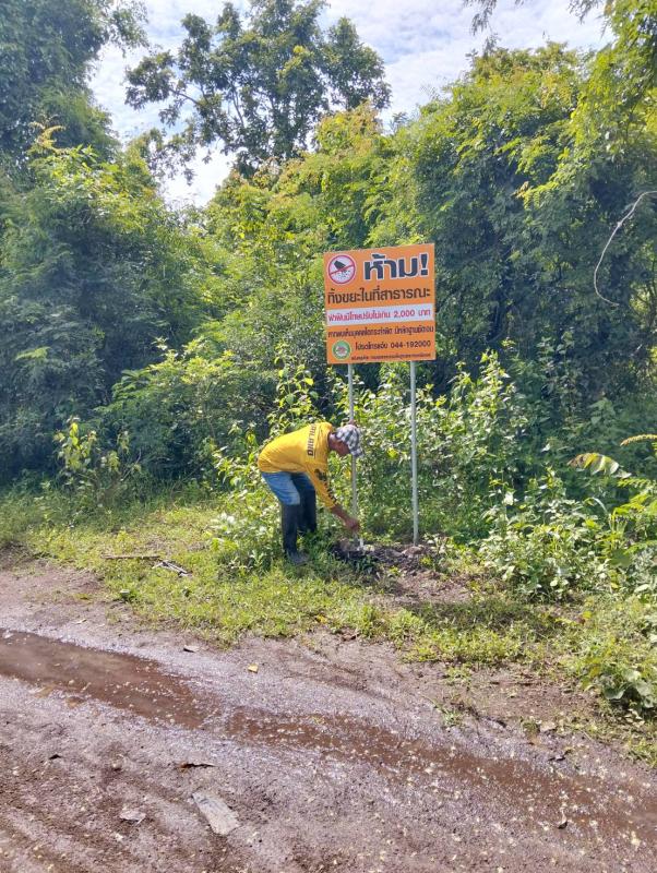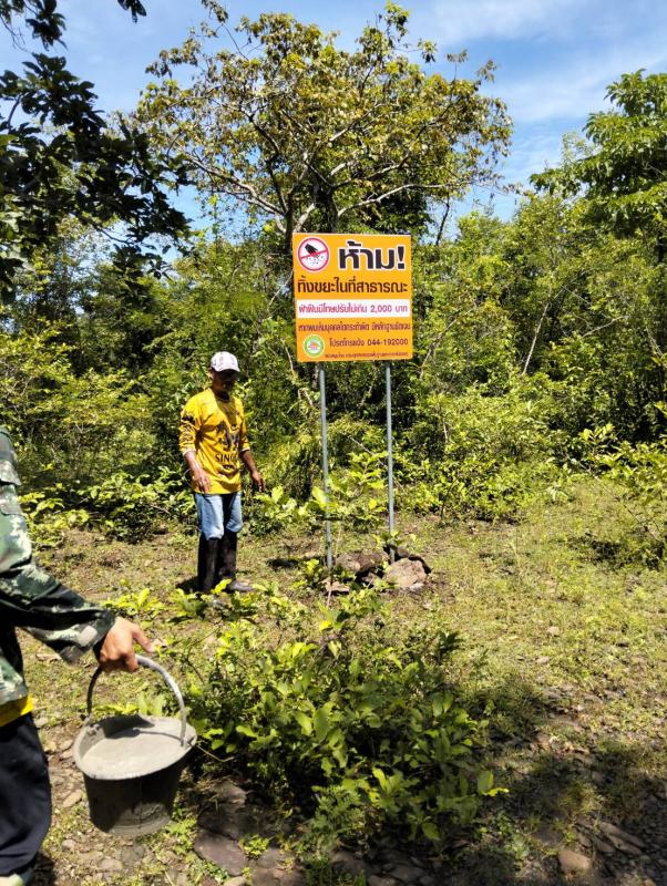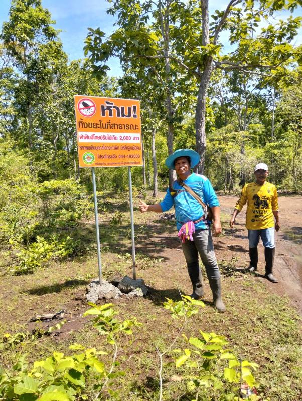 ติดตั้งป้ายประชาสัมพันธ์ห้ามทิ้งขยะในพื้นที่ป่าชุมชน