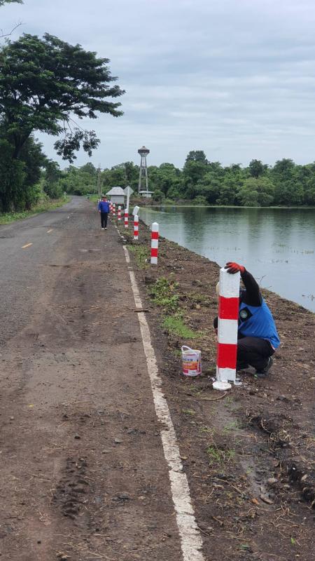 ที่ปรึกษานายกเทศมนตรีฯ นำทีมงานป้องกันฯ และกองช่าง ดำเนินการติดตั้งเสาหลักลาย ริมอ่างเก็บน้ำคลองโพธิ์