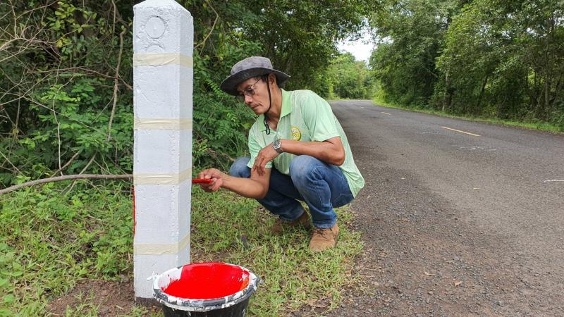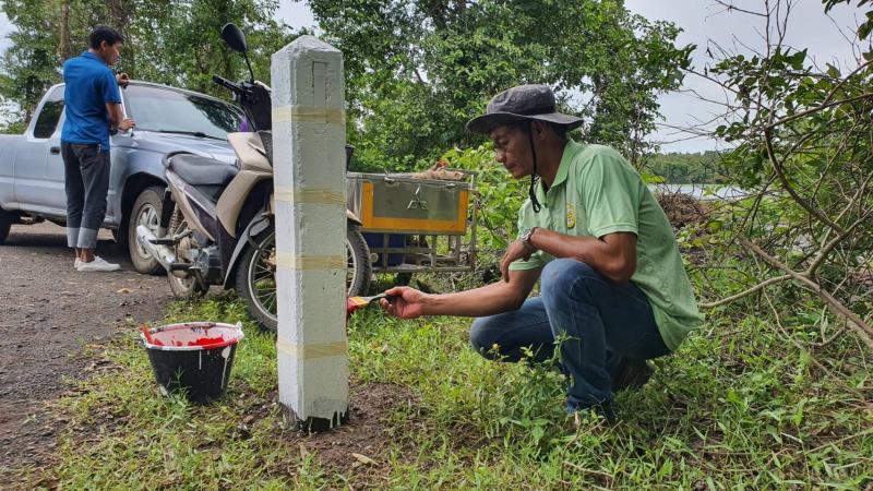ติดตั้งเสาหลักลาย ริมอ่างเก็บน้ำคลองโพธิ์