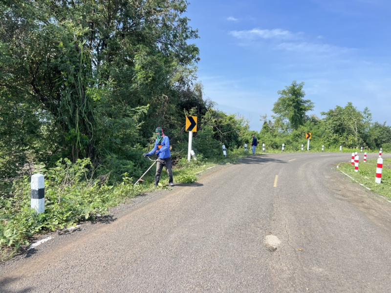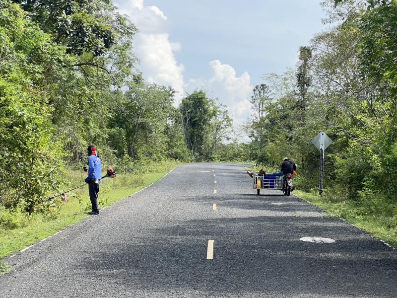 ออกตัดแต่งต้นไม้ริมถนน เพื่อปรับทัศนวิสัยในการขับขี่ให้ดียิ่งขึ้น ถนนเส้นบ้านถาวร-โคกสำราญ