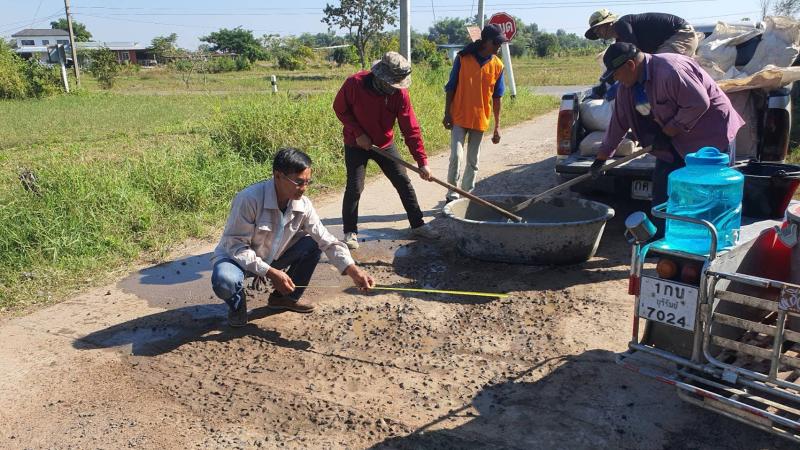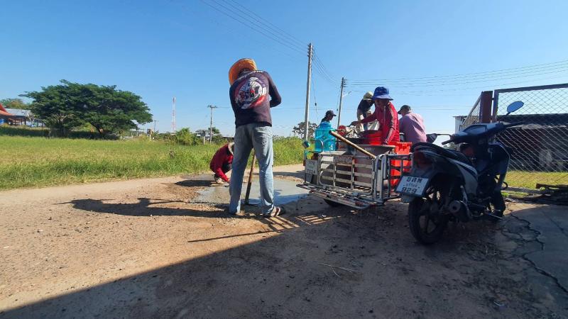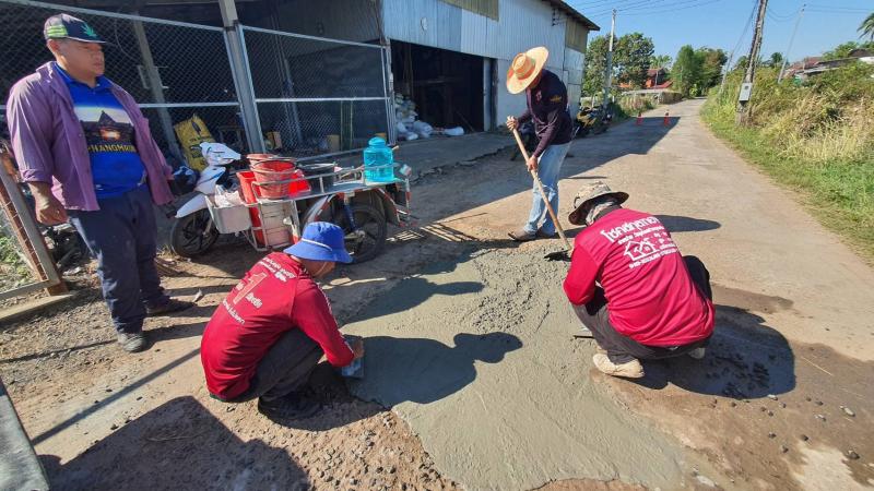 งพื้นที่ซ่อมถนนคอนกรีตที่ชำรุดบริเวณหน้าโรงสี หมู่ที่ 2